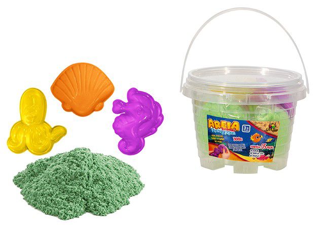Para brincar e modelar lindas esculturas em areia. As forminhas são com a temática fundo do mar. Acompanha 1 balde, 3 forminhas e 300g de massa.